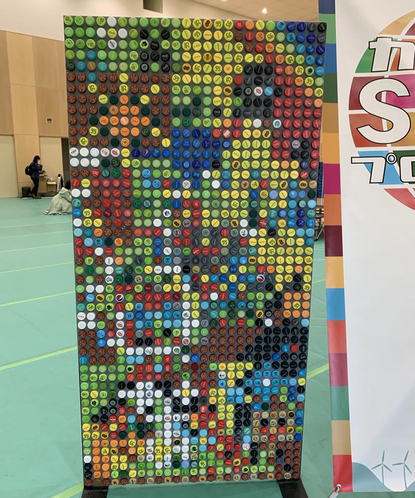今年度のボトルキャップでアート作品展にご応募いただいた“SDGs”をテーマにした2作品を展示