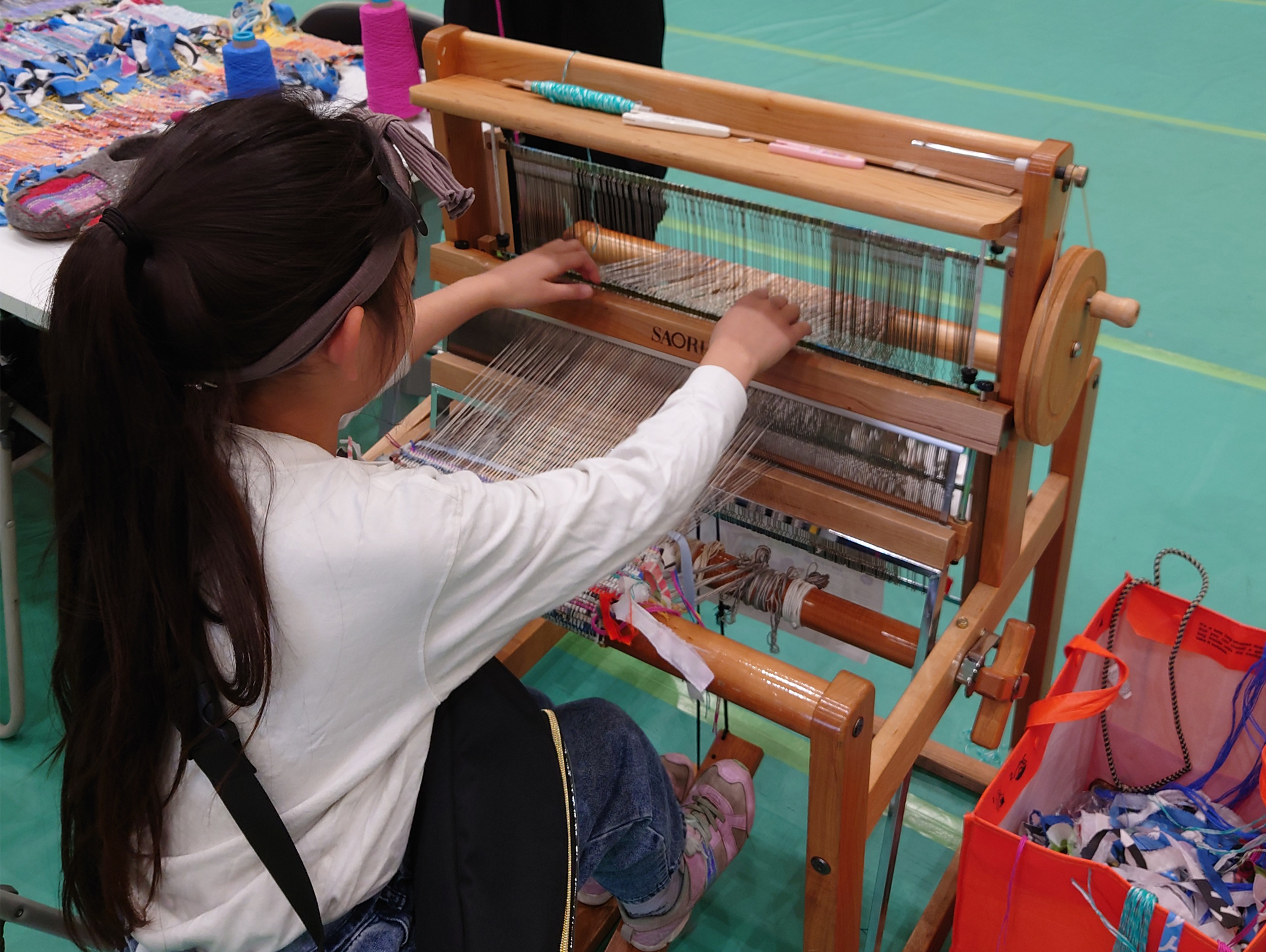 多くの皆さまに「さをり織り」を体験していただきました。