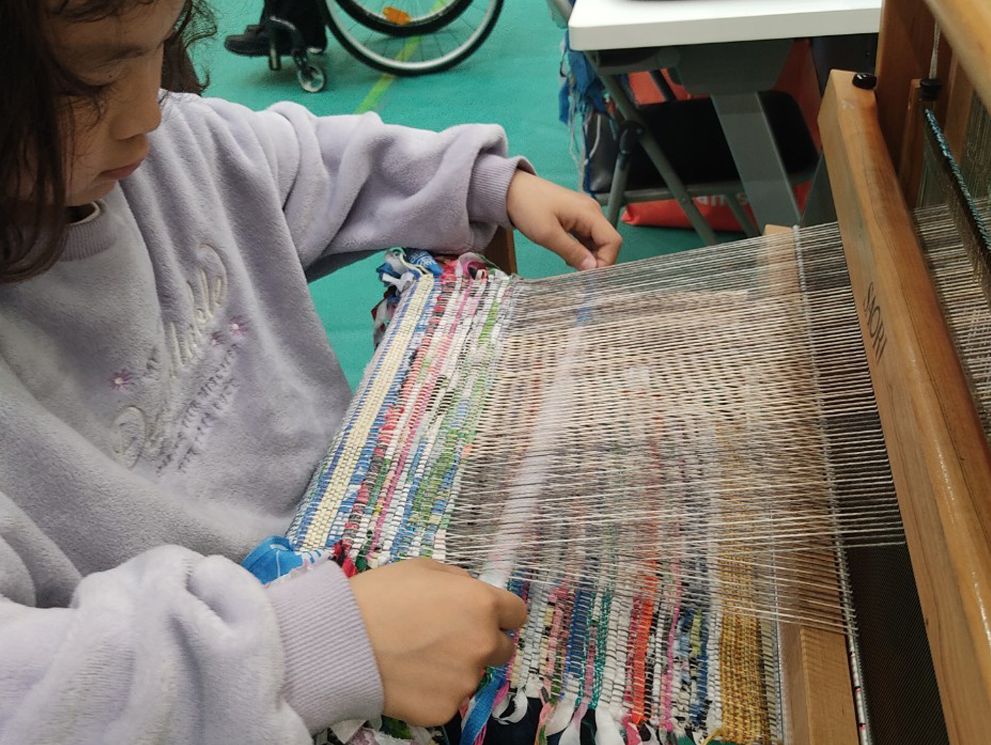 新たな魅力を持ったオリジナルの作品に仕上がり、参加いただいた皆さん、とても満足していただきました。- さをり織り体験(協力:ノクチ基地)