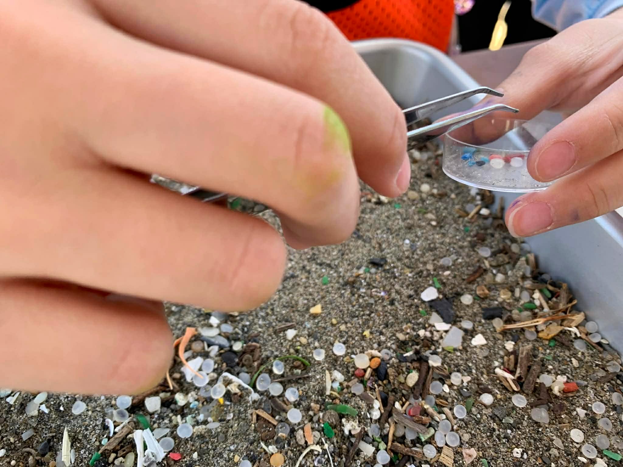 川崎のビーチの砂から海洋マイクロプラスチックを見つけ出し、そのマイクロプラスチックを使って可愛いチャームを作ります。