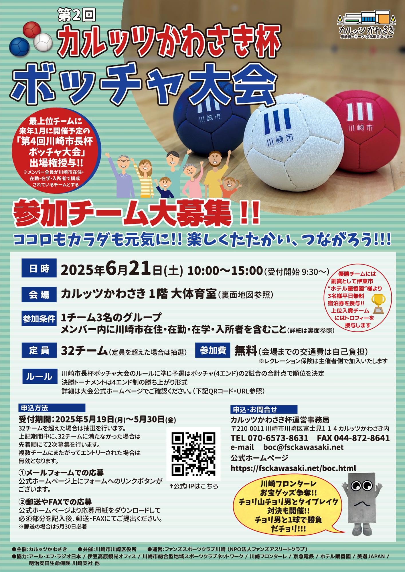 川崎市川崎区富士見1-1-4主 催 カルッツかわさき 共 催 川崎市川崎区役所 募 集 枠 32チーム